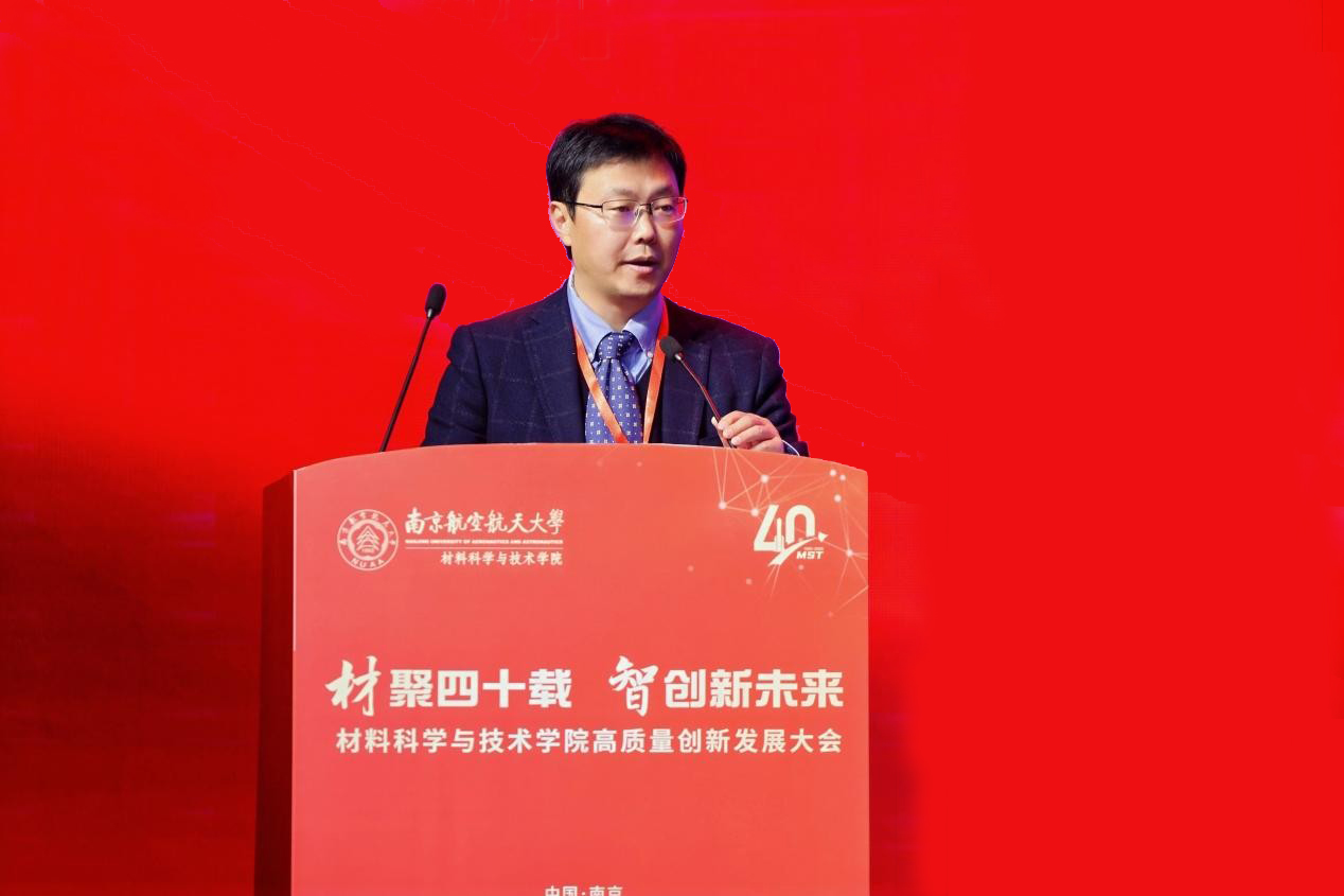 院长顾冬冬作学院发展报告,就学院四十年来的建设情况、发展成效以及未来展望进行汇报。砥砺深耕、守正创新,几代南航材料人始终坚持服务国家战略,围绕空天材料、成形加工、表面工程、能量存储、核技术应用等开展前沿研究,材料科学学科进入ESI全球前1‰,综合实力稳步提升。未来,学院将锚定学校2035年发展目标,聚焦“十年行动计划”,持续为航空航天、国防科技和产业创新贡献材料力量。