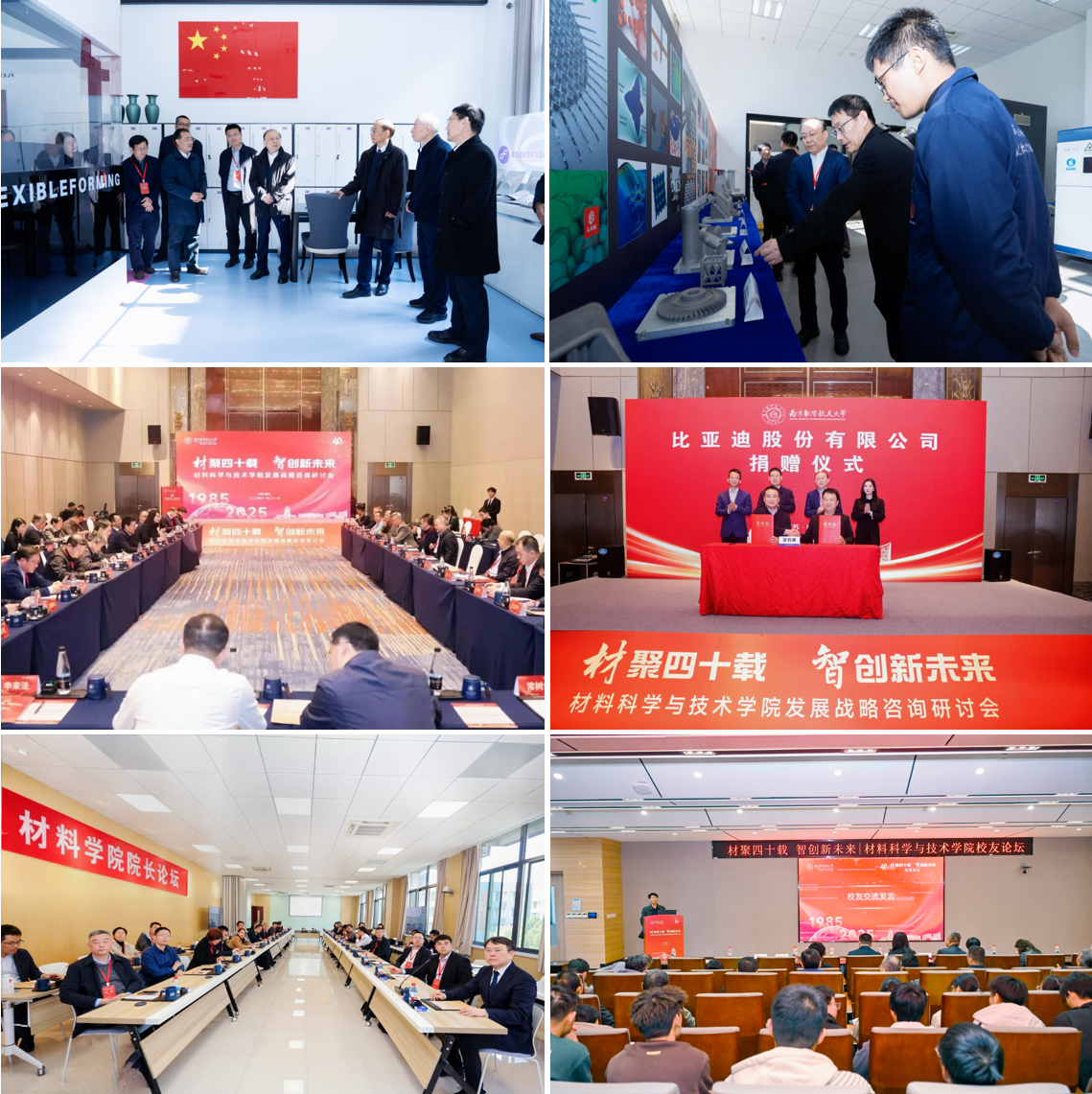 大会期间,材料学院还举行了发展战略咨询研讨会、比亚迪奖学(教)金捐赠仪式、材料学院院长论坛、校友论坛等系列活动,发布《材华正茂·师道匠心——国产直播 师者奋进采访纪实》。相关领导、专家、校友、师生齐聚一堂,围绕学科建设、人才培养、科技创新、国际合作等议题开展研讨、汇聚智慧,为学院高质量创新发展聚智聚力、共绘蓝图。