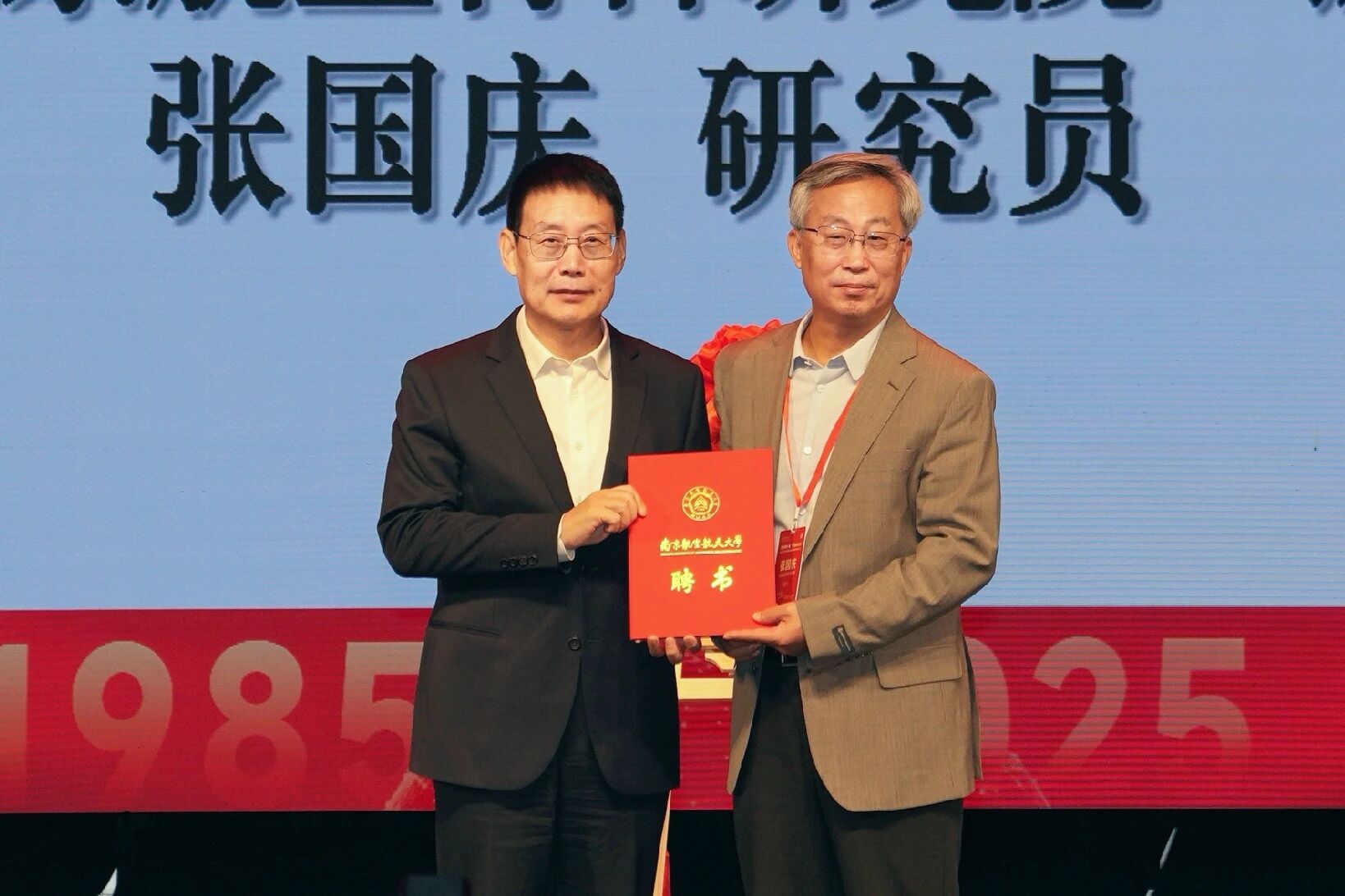 大会还举行了张国庆受聘我校“钱伟长讲座教授”仪式。甄良为张国庆颁发聘书,张国庆留下手印并签名。
