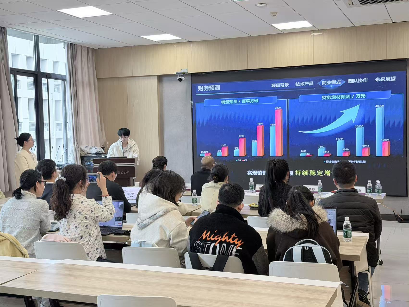 在项目辅导环节,学院参赛团队依次进行路演汇报,围绕项目背景、核心技术、应用场景及创新亮点等内容进行了系统展示。姜鹏飞结合评审标准与行业经验,从项目整体逻辑构建、技术创新表达、应用场景拓展、商业模式完善以及路演展示效果等多个维度进行了逐一点评。他不仅针对项目中存在的共性问题提出了具有可操作性的优化建议,还从评委视角出发,指导团队在PPT呈现、时间把控与答辩表达等方面进一步提升专业化水平,帮助项目实现从“有亮点”“有竞争力”的跃升。